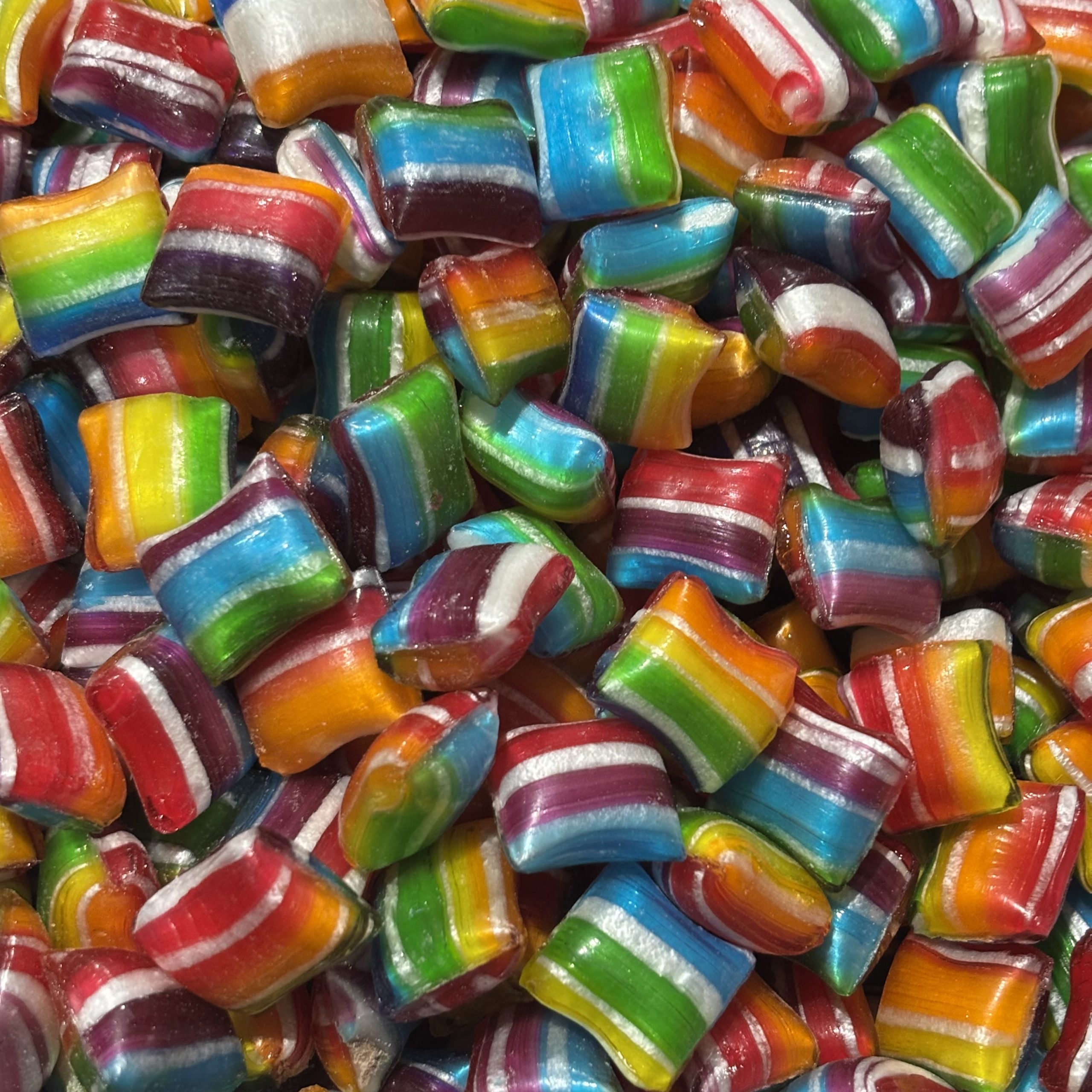 These rock candies have a thick candy outer shell with a thin layer of chocolate in the middle.