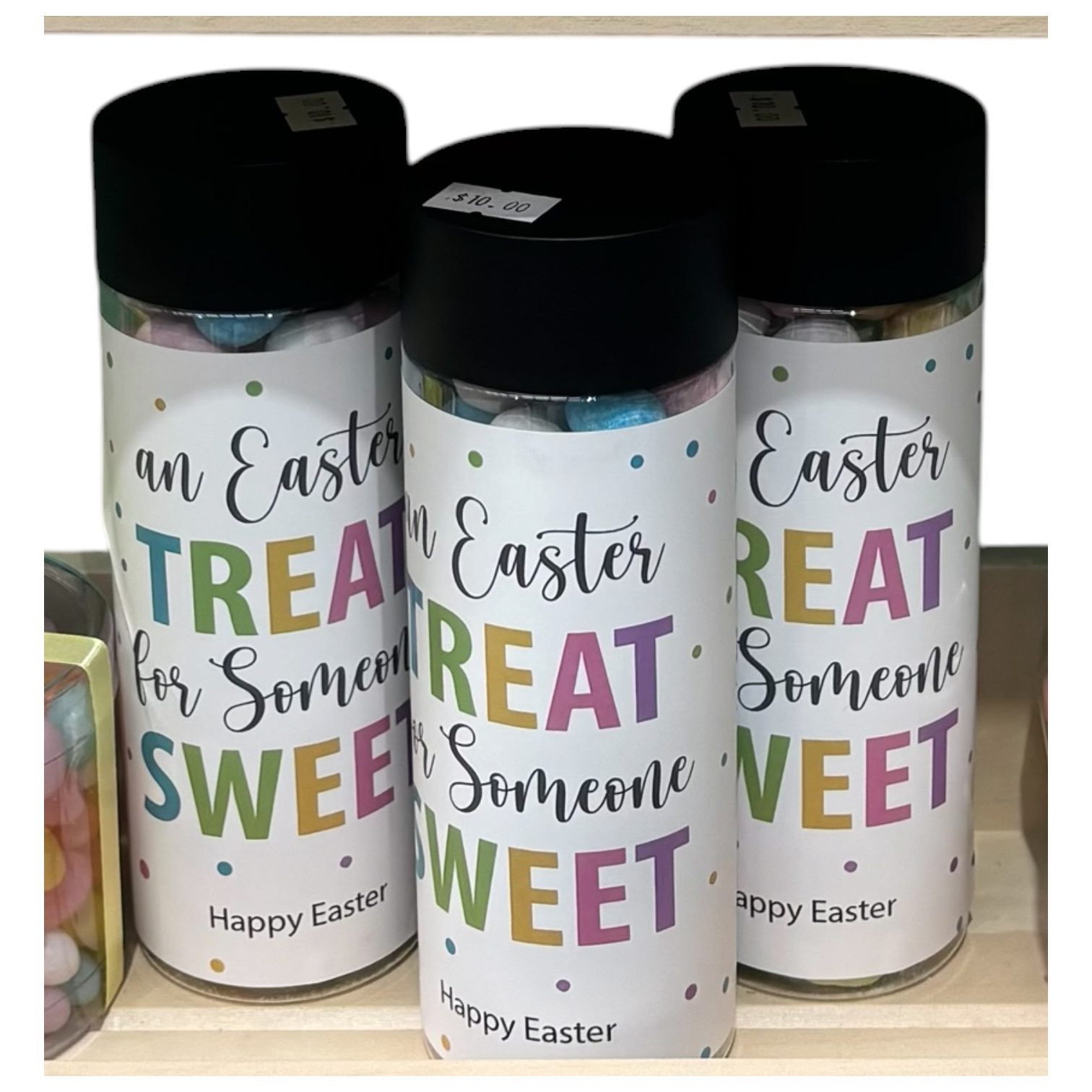 Packaged in a plastic tube with an Easter decal - "an Easter treat for someone sweet".