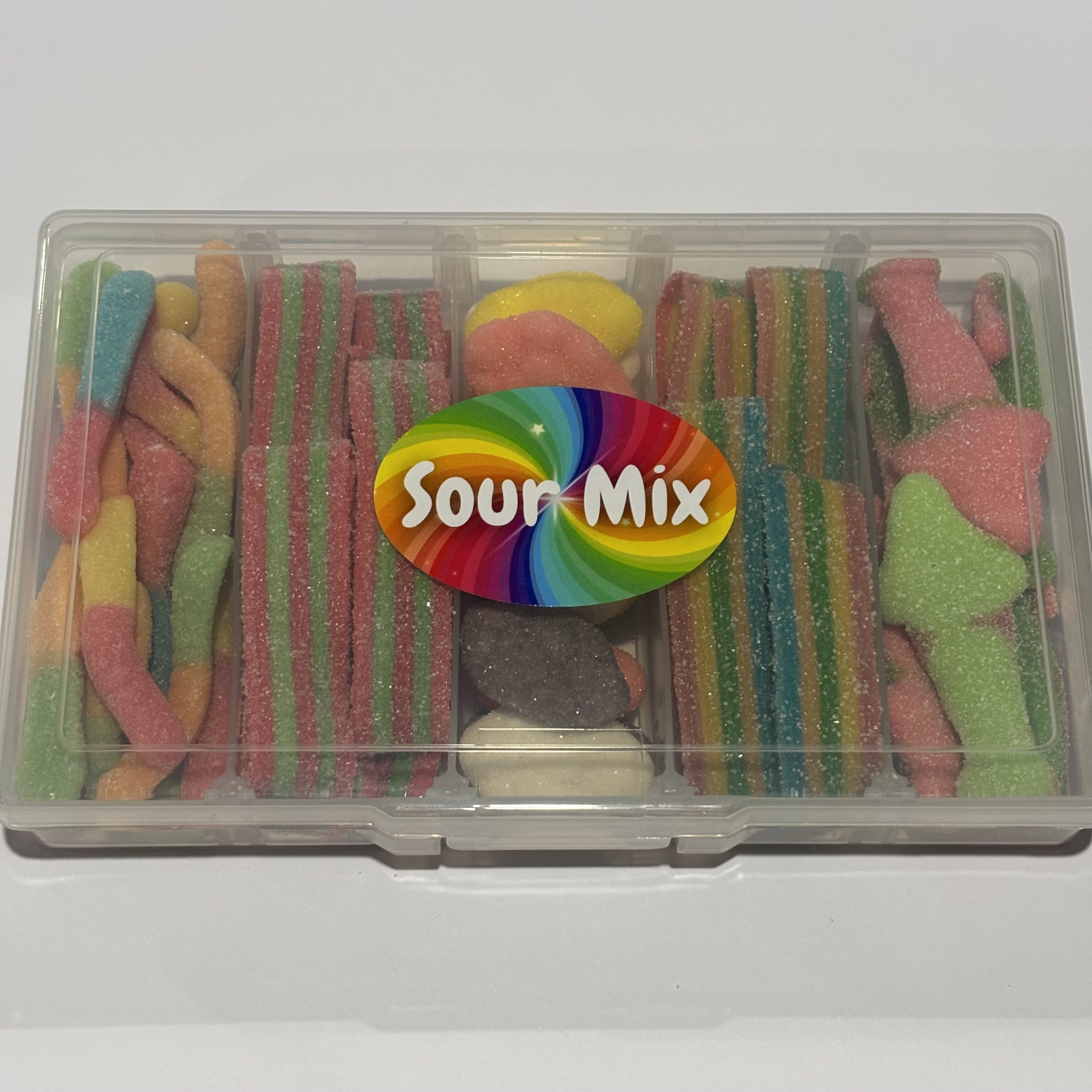 May include: Sour Worms, Watermelon Sour Straps, Sour Clouds (assorted flavours), Rainbow Sour Straps, Sour Watermelon Sharks.