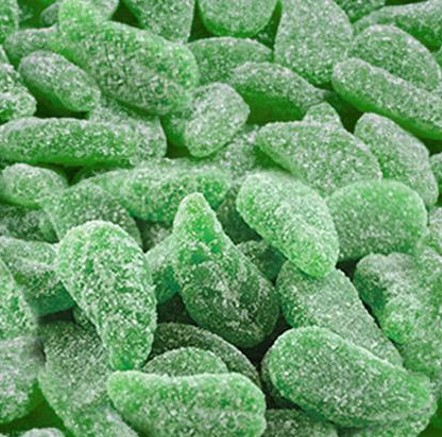 Chewy spearmint leaves that are soft jelly dusted in sugar.